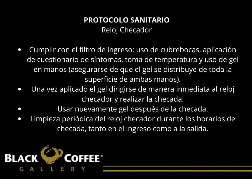 y salida de turno a través de huella digital en el corporativo Black Coffee