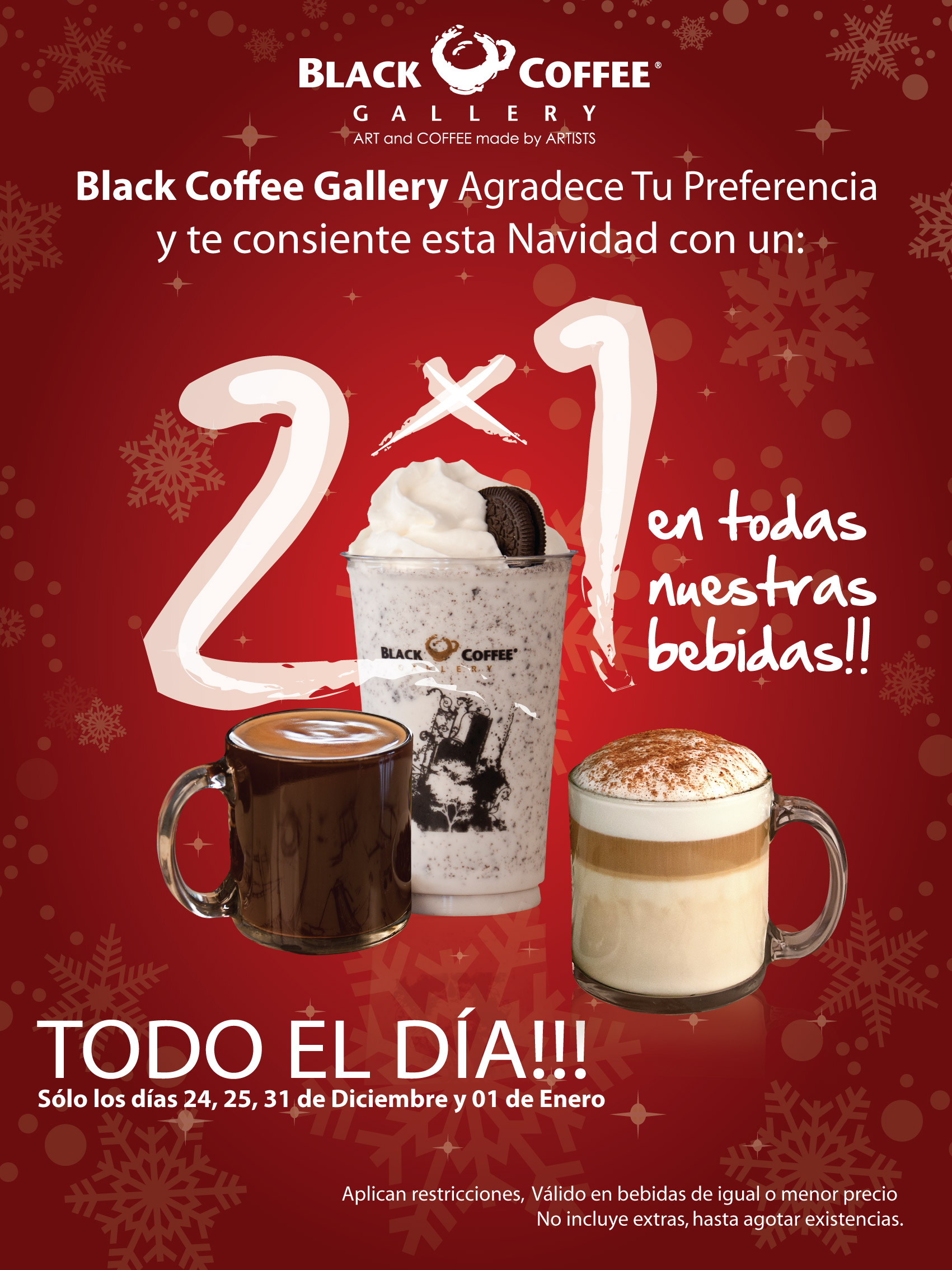 Esta promoción sólo será vigente los días: 24, 25, 31 de Diciembre y 1 de