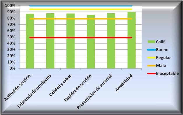 nivel optimo de calidad específicamente para las sucursales BCG. Cualquier
